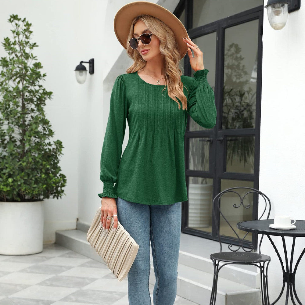 Women's Solid Color Casual Puff Sleeve Round Neck Top